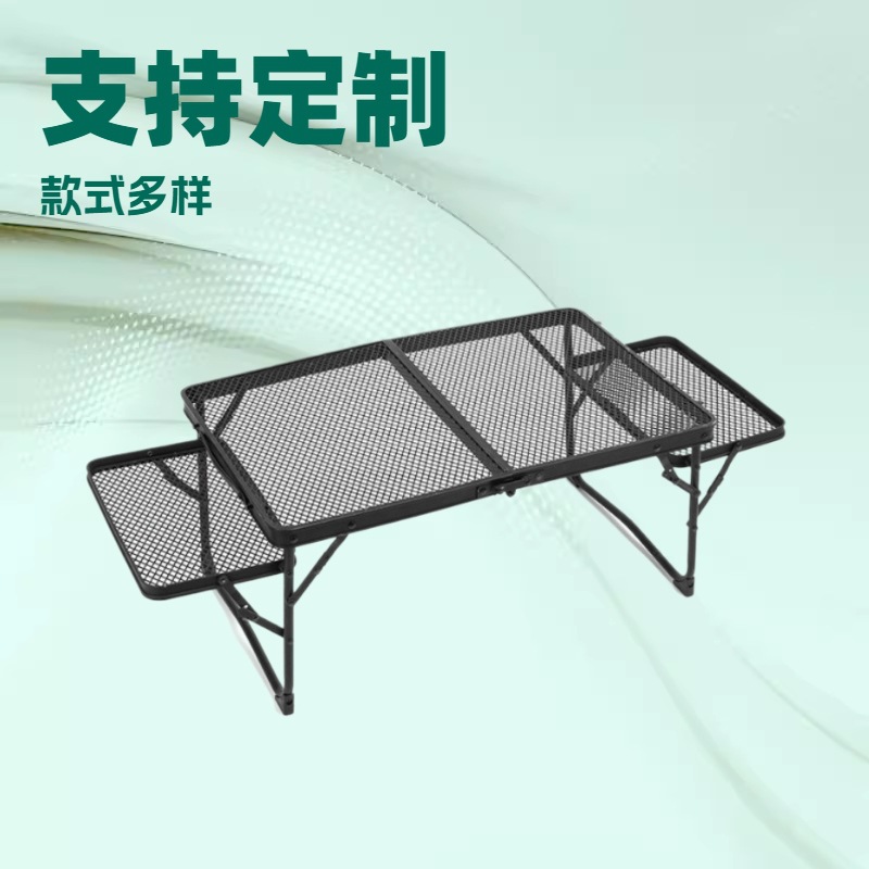 Penjualan langsung dari pabrik rak situs T-230 Corman besi meja lipat multi-fungsi meja piknik untuk berkemah luar ruangan meja barbekyu