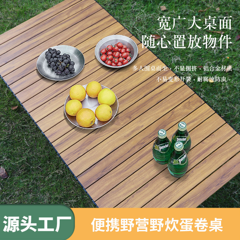 Meja gulung telur piknik untuk berkemah portabel, perjalanan luar ruangan berkemah, biji-bijian kayu, Meja rol telur bahan Aloi aluminium
