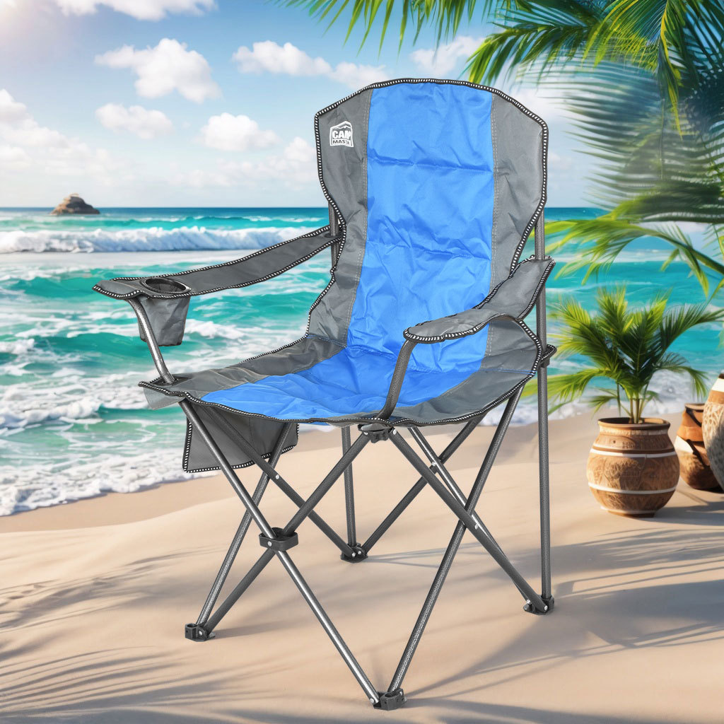 Kursi lipat luar ruangan portabel berkemah, kursi berkemah sandaran tangan ringan memancing bangku lipat kursi pantai logo