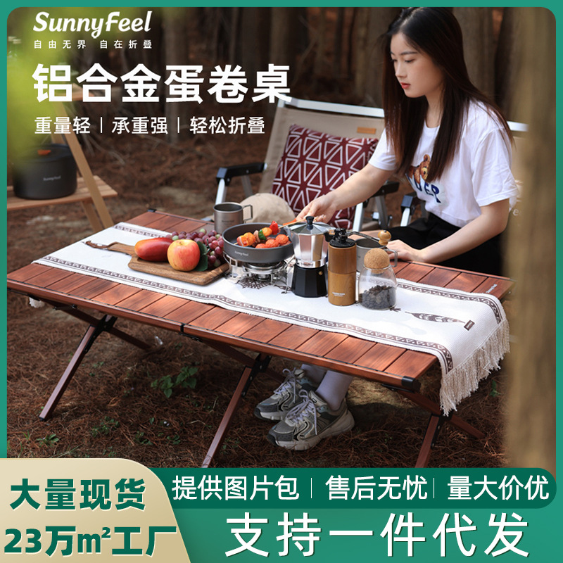 SunnyFeel meja makan luar ruangan, kursi dan berkemah, Meja lipat paduan aluminium portabel, Meja lipat telur