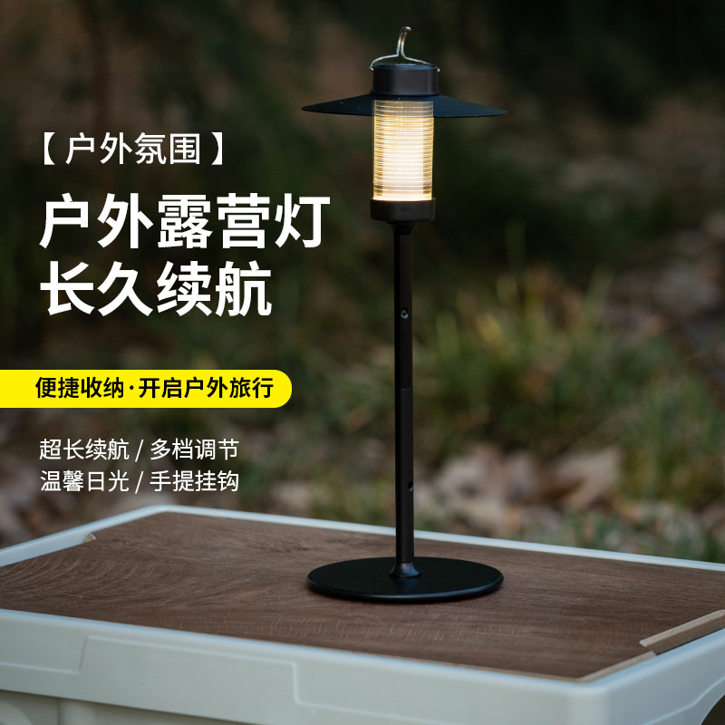 COOLCAMP lampu gantung portabel, lampu berkemah luar ruangan, rak lipat kombinasi tiang besi, lampu berkemah