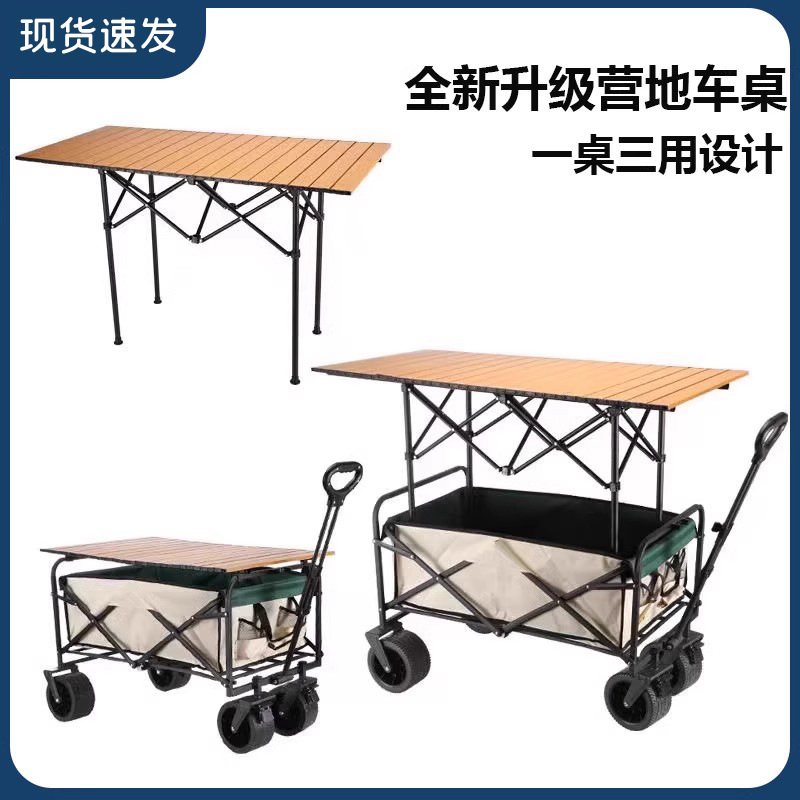 Gerobak Berkemah Luar Ruangan Meja Lipat Paduan Aluminium Meja Gulung Telur Portabel Bisa Naik Turun Meja Gulung Telur Pola Kayu Berkemah
