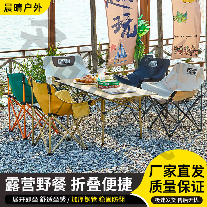 Kursi Meja Lipat Luar Ruangan Model Baru Kursi Bulan Piknik Portabel Peralatan Berkemah Berkemah Set Kursi Lipat Logam