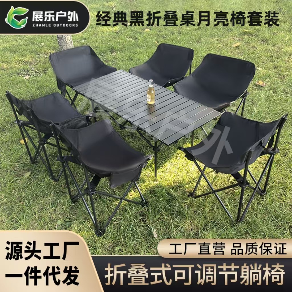 Meja Lipat Hitam Klasik Luar Ruangan Set Kursi Bulan Meja Lipat Berkemah Meja Pasar Malam Meja Makan Gulungan Telur Lipat Berkemah
