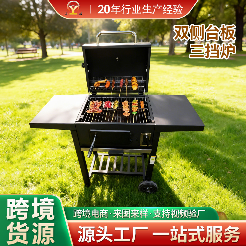 Kompor barel minyak barbekyu, tiga blok suhu dapat disesuaikan luar ruangan halaman pembakar minyak kompor barbekyu Amerika Sumber pabrik