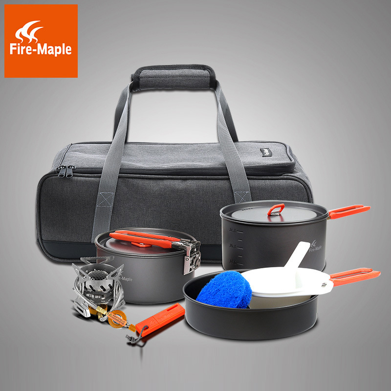 Fire Maple piknik keluarga luar ruangan perjalanan mengemudi sendiri paket 121 cahaya tahan angin kompor gas set Pesta pot untuk 3-4 orang
