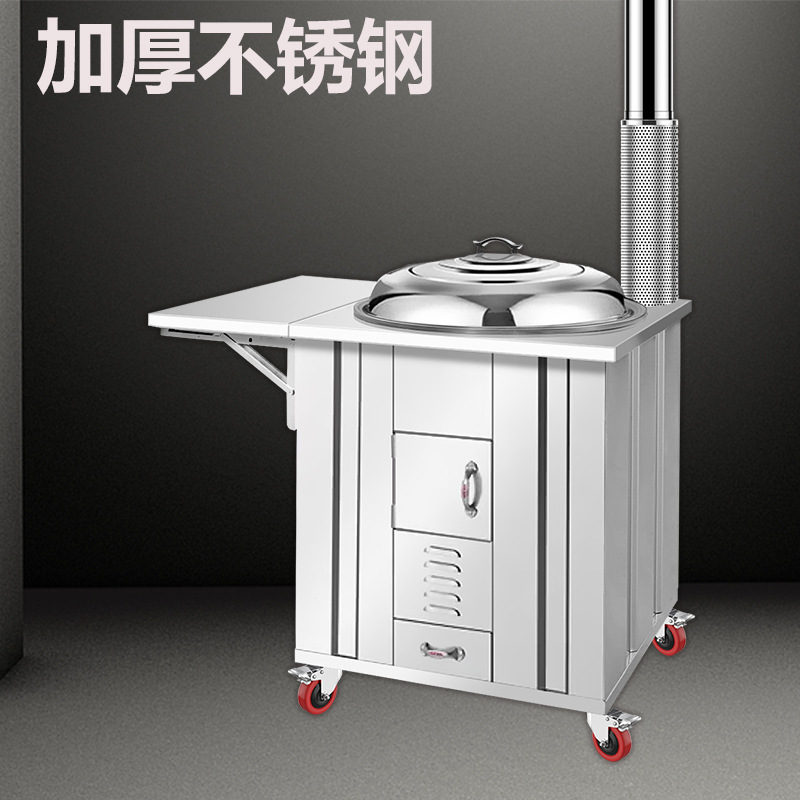 Kompor kayu bakar pedesaan kompor bergerak rumah tangga kompor luar ruangan baja tahan karat pot besi besar kompor pengapian satu klik