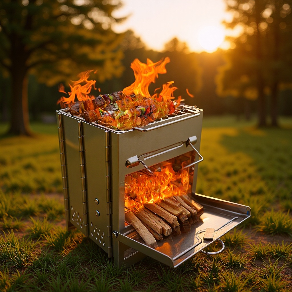 Kompor barbekyu luar ruangan portabel, kompor kayu bakar baja tahan karat kompor karbon Kemah baja tahan karat kompor barbekyu halaman meja api