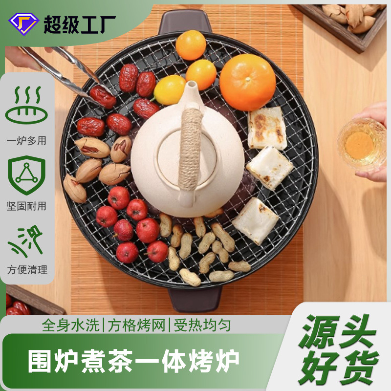 Kompor teh memasak 3-5 orang, kompor karbon berkemah luar ruangan kompor barbekyu arang rumah tangga portabel Bebas Asap rak barbekyu