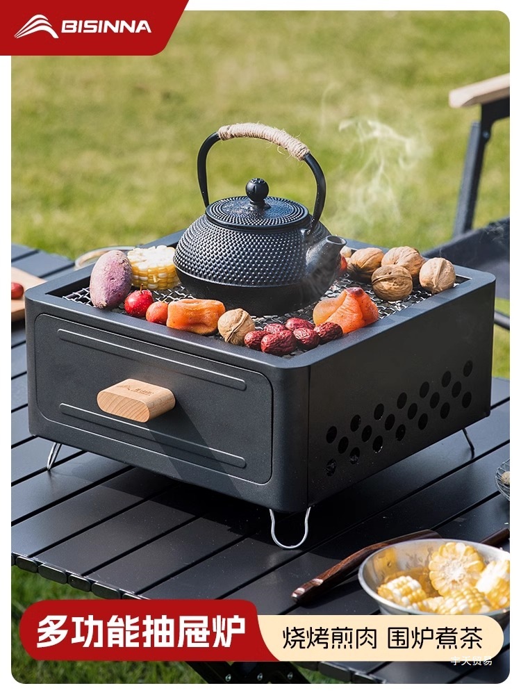 Perkemahan Luar Ruangan Multifungsi Dilipat Barbekyu Karbon Tungku Pemanas Halaman Tungku Teh Meja Masak Teh Kompor Dalam Ruangan