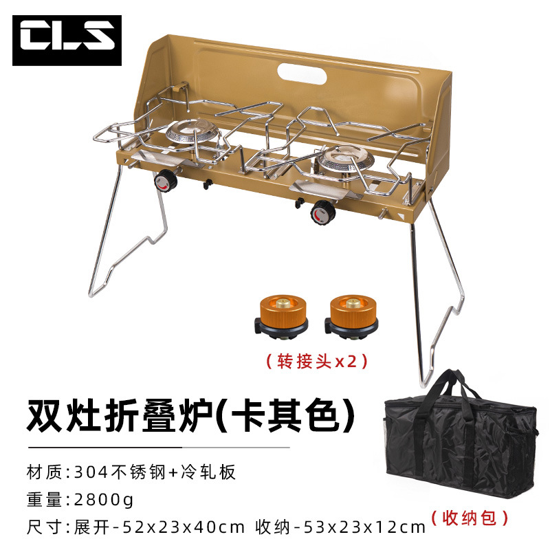 Kompor gas portabel, kompor gas ganda portabel untuk piknik luar ruangan, mengemudi sendiri, mobil, kompor kartu dua kepala, kompor berkemah lipat, kompor ganda