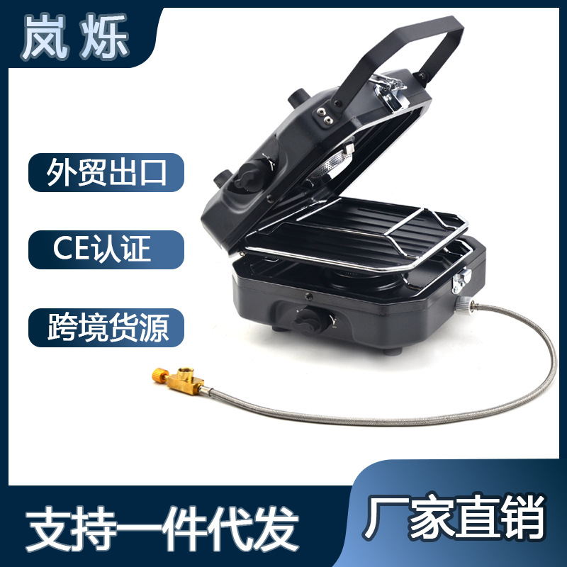 Tungku Kartu Kepala Ganda Lintas Batas Portabel Tungku Kartu Lipat Luar Ruangan Satu Bagian Panggangan Satu Bagian Bisa Goreng dan Masak Tungku Dua Sisi