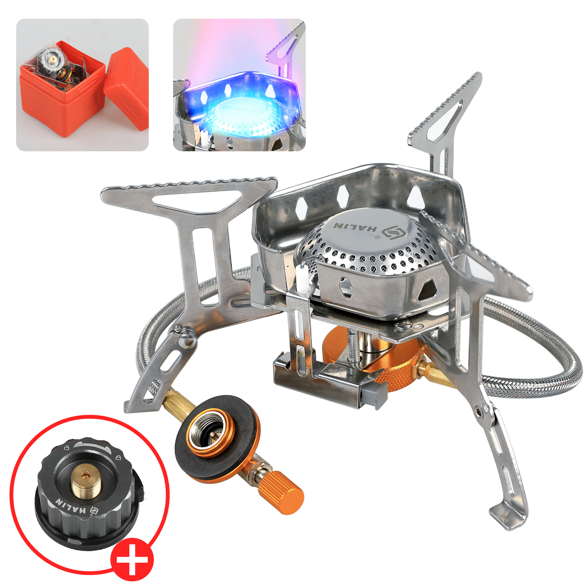 Kepala kompor gas portable Kemah, Kepala kompor gas datar, tahan angin, kepala konversi tangki gas diperpanjang, portabel, panas, kepala tunggal, adaptor plus