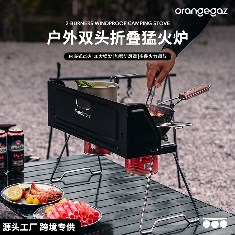 Kompor Ganda Luar Ruangan Tungku Kartu Anti Angin Lipat Kompor Gas Kepala Ganda Berkemah Kompor Gas Lapangan Berkemah