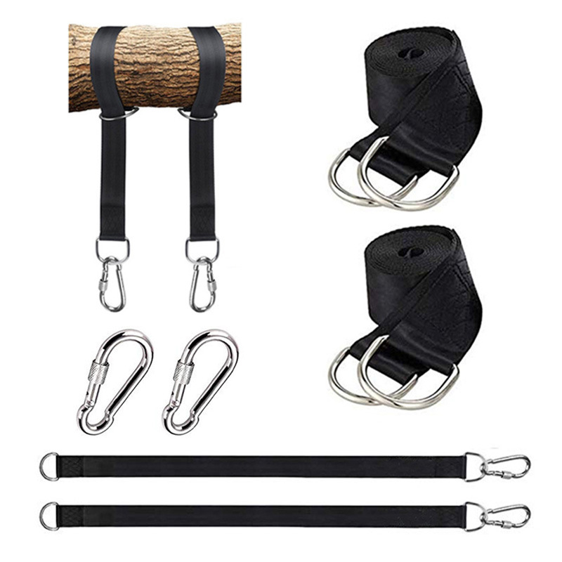 Tali tempat tidur gantung poliester 3 M 18 cincin, bantalan beban kekuatan tinggi, tali pohon khusus tempat tidur gantung luar ruangan, tali tempat tidur gantung simpul hitam