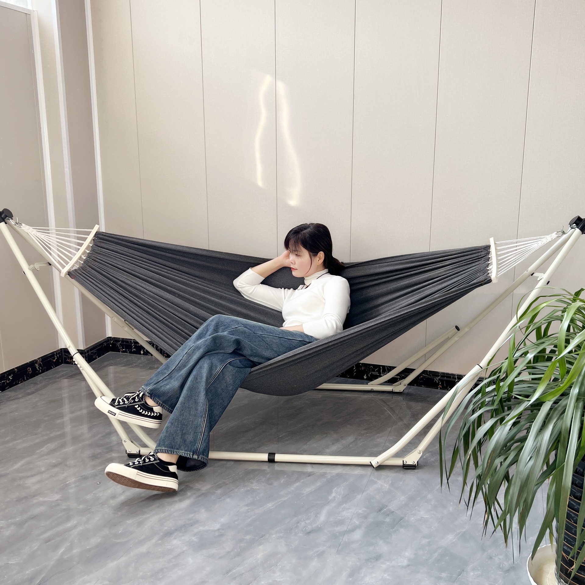Braket lipat tempat tidur gantung kursi braket Amazon tebal lipat bingkai baja dalam ruangan luar ruangan bingkai tempat tidur gantung produsen
