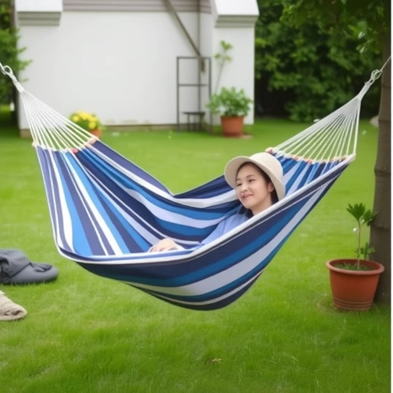 Perdagangan luar negeri amazon jaring tali katun tongkat kayu tunggal ganda tempat tidur gantung anak-anak dewasa diperlebar musim panas 200*80cm