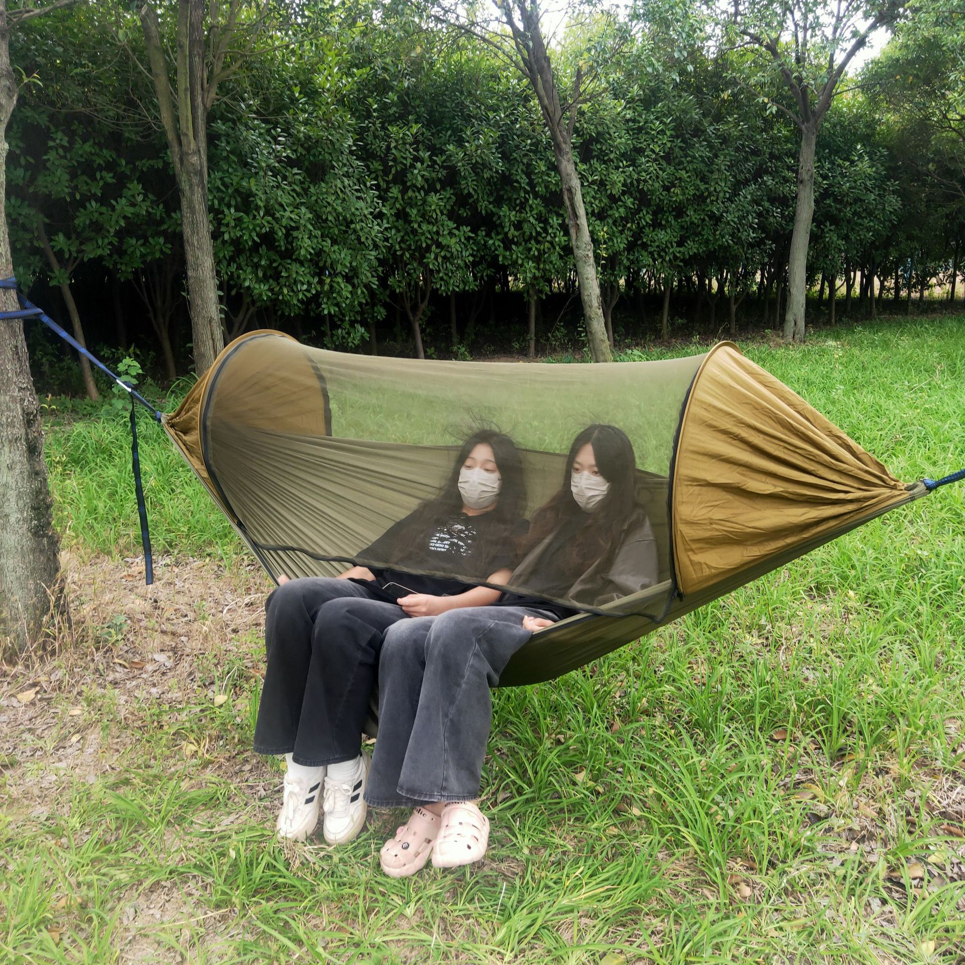 Tempat tidur gantung luar ruangan otomatis terbuka cepat kelambu tempat tidur gantung untuk berkemah tunggal ganda kursi gantung asrama santai dalam ruangan