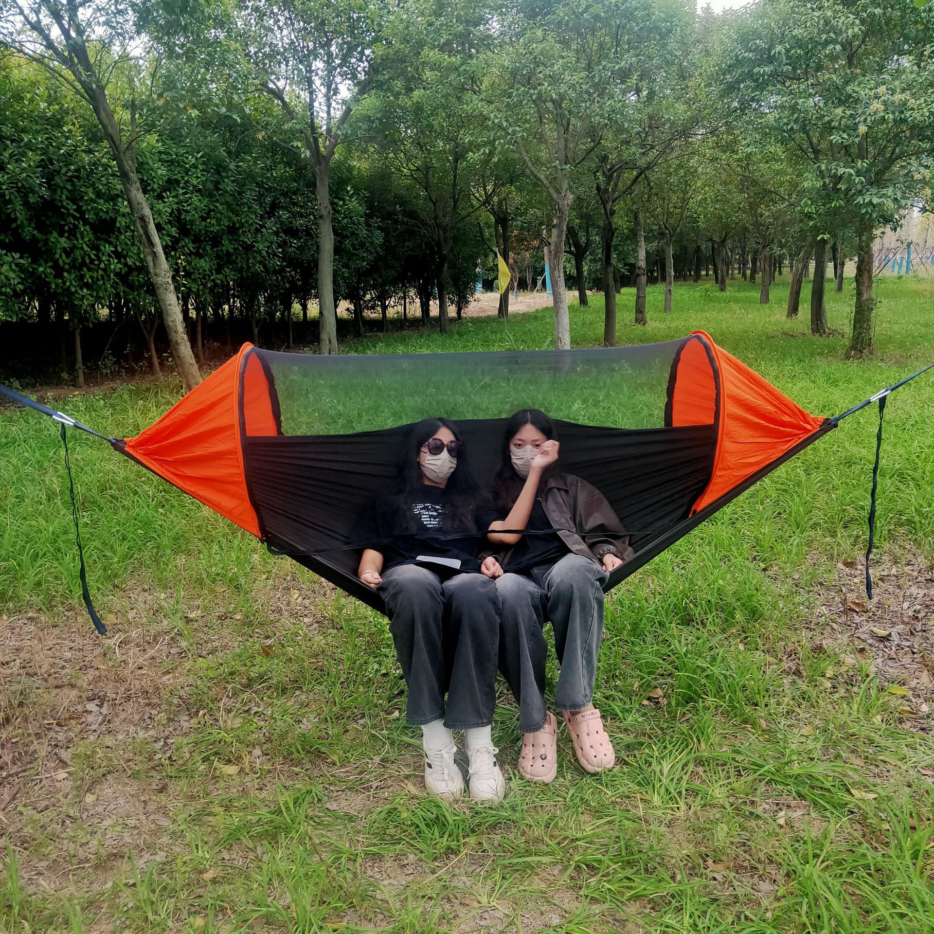 Tempat tidur gantung kelambu kain parasut baru, tempat tidur gantung luar ruangan, tempat tidur gantung kelambu cepat terbuka, tempat tidur gantung ganda