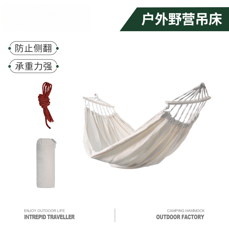 Tempat tidur gantung Kemah tunggal, tempat tidur gantung berkemah luar ruangan, braket balkon santai rumah, tongkat kayu anti Guling grosir