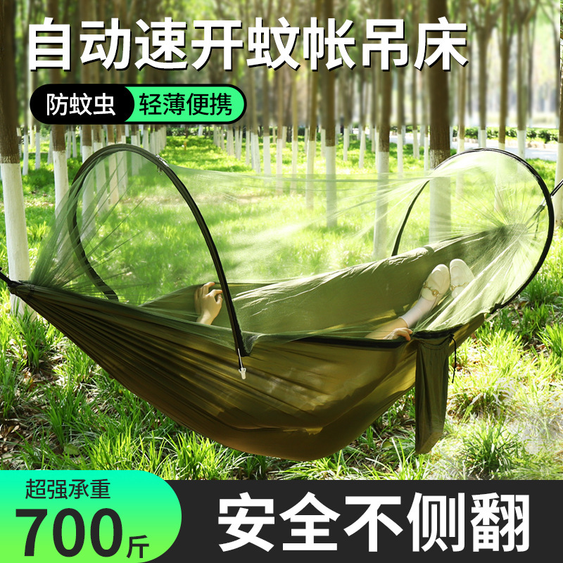 Tempat tidur gantung otomatis luar ruangan, tempat tidur gantung jaring nyamuk tunggal dan ganda dengan jaring luar ruangan, jaring nyamuk Kemah