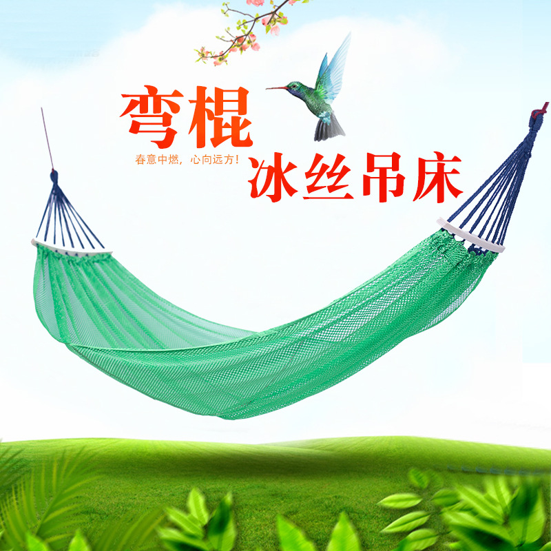 Tempat tidur gantung sutra es stik melengkung tempat tidur gantung luar ruangan pabrik grosir stik melengkung antilipat ayunan ayunan sutra es