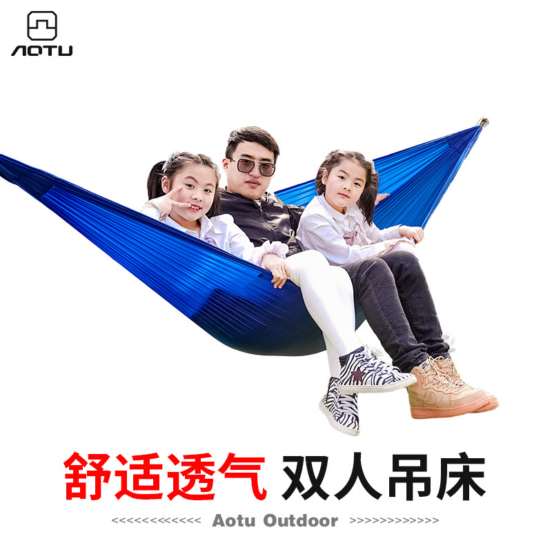 Tempat tidur gantung genggam luar ruangan, tempat tidur gantung ganda santai berkemah dengan tali terikat dengan gantung cepat 347G AT6750