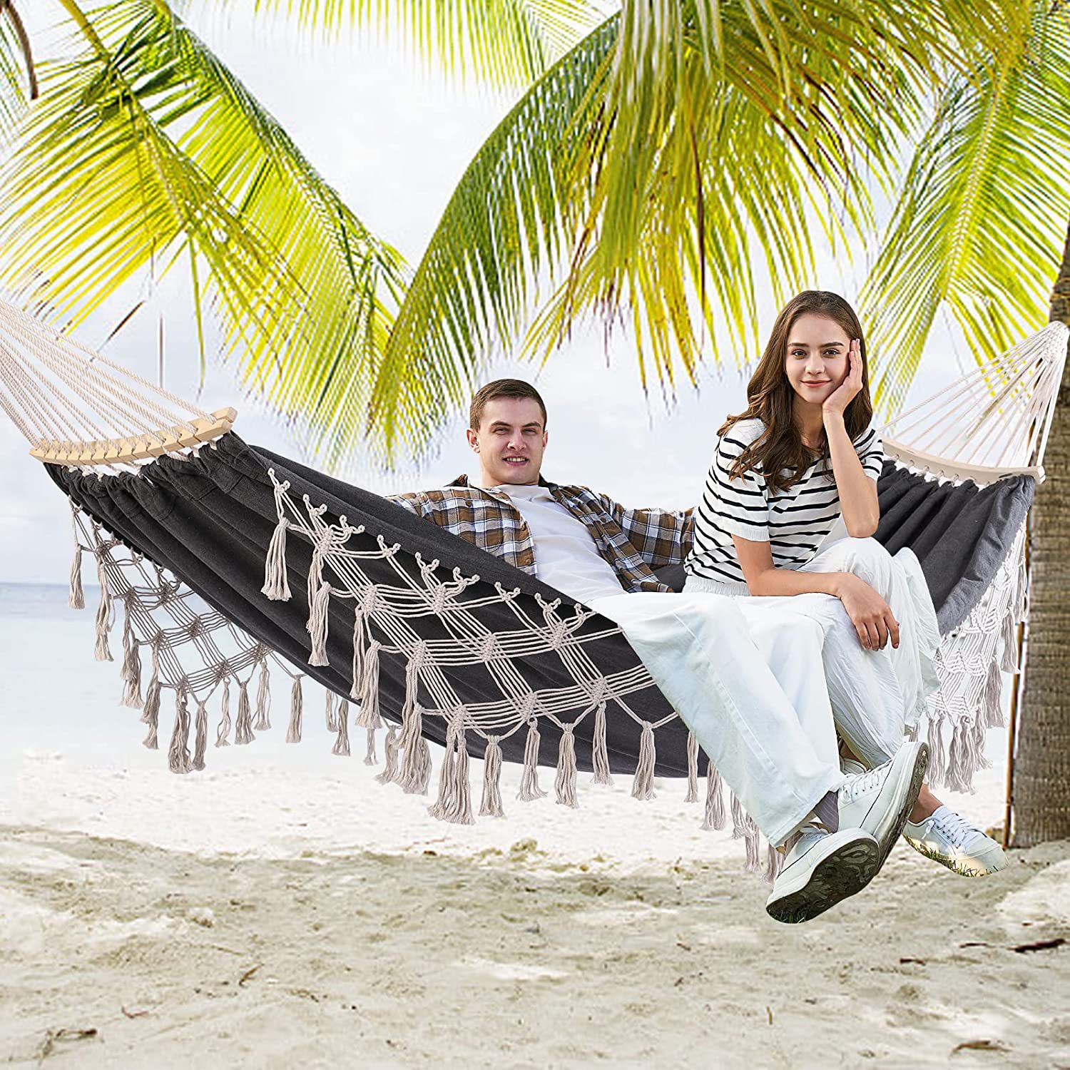 Pasokan pabrik luar ruangan renda katun kanvas rumbai tempat tidur gantung grosir dalam ruangan luar ruangan santai rumbai tempat tidur gantung