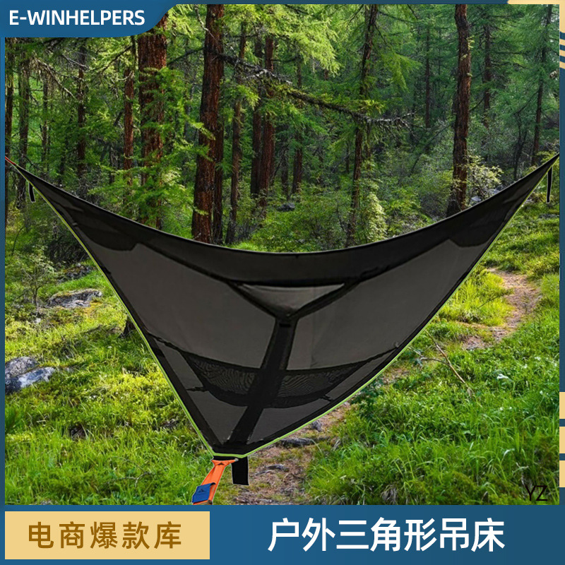 Tempat tidur gantung segitiga udara luar ruangan, peralatan berkemah taman Ganda multi orang anti guling, pohon gantung ringan luar ruangan
