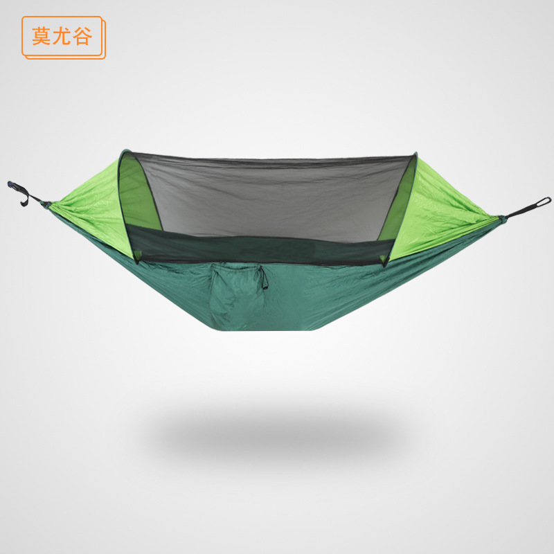 Tempat tidur gantung otomatis cepat terbuka, jaring nyamuk hijau untuk berkemah, tempat tidur gantung nilon anti-guling dengan jaring nyamuk