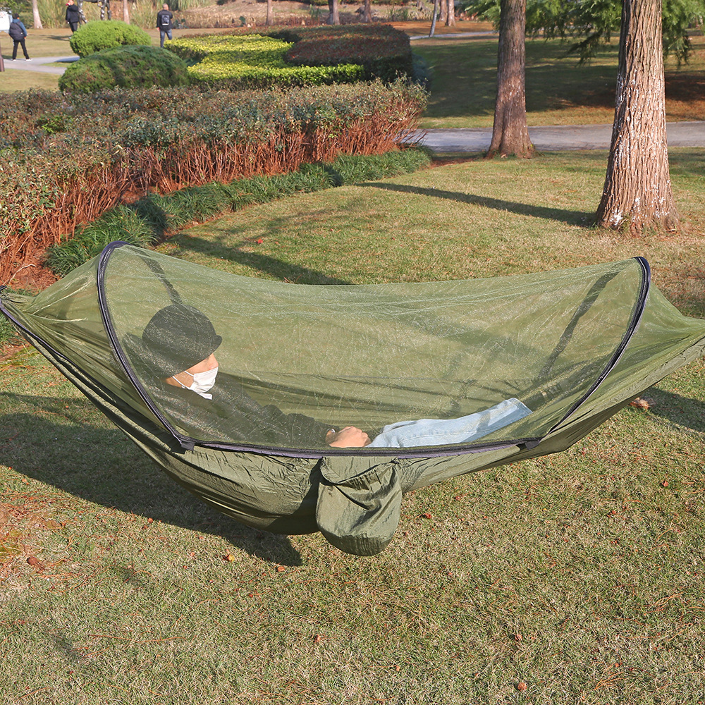 Tempat tidur gantung anti nyamuk, tempat tidur gantung anti nyamuk, otomatis, cepat terbuka, pabrik, luar ruangan, parasut ganda tunggal, dengan jaring nyamuk, warna cocok