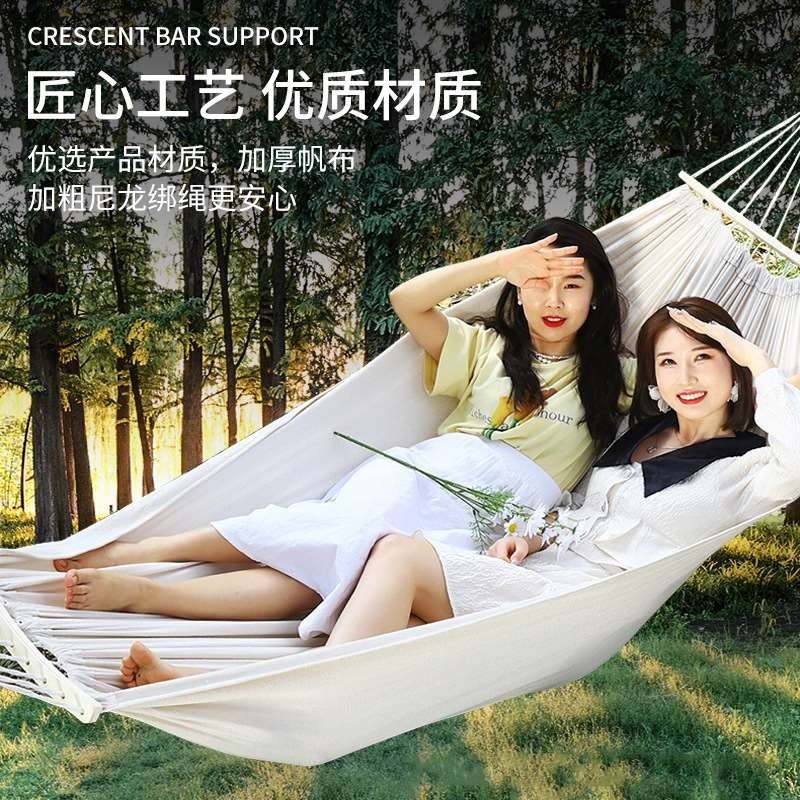 Tempat Tidur Gantung Warna Putih Luar Ruangan Tebal Kain Kanvas Ekstra Tebal Tunggal dan Ganda Anti Angin Sisi Tiang Kayu Kursi Gantung Orang Malas di Asrama Mahasiswa