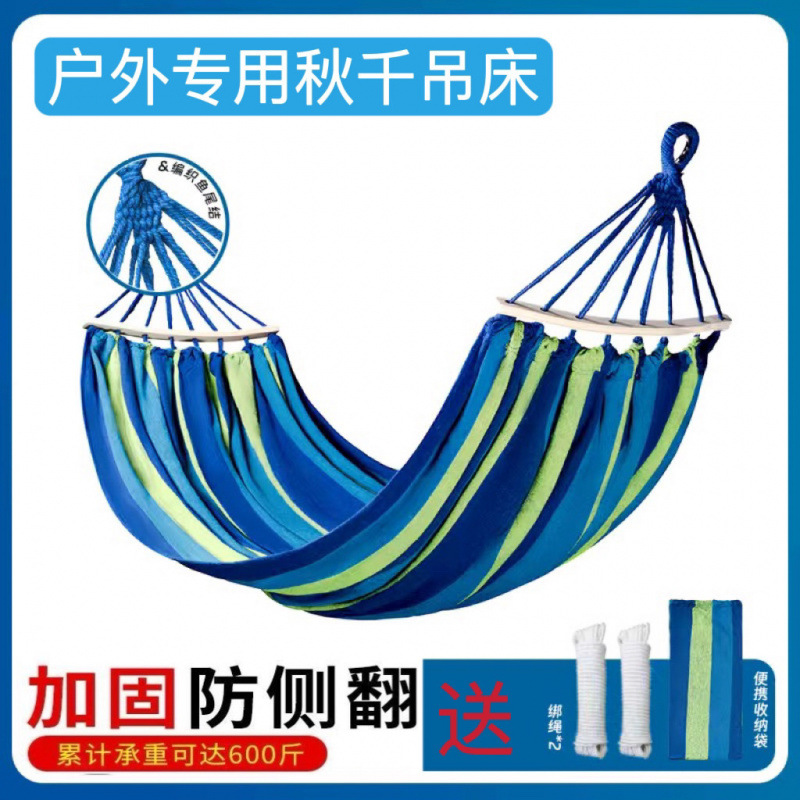 Tempat Tidur Gantung Luar Ruangan Kanvas Ekstra Tebal Kain Kanvas Pelangi Berkemah Santai Satu Orang Dua Siswa Tempat Tidur Gantung Dalam Ruangan Diikat di Pohon