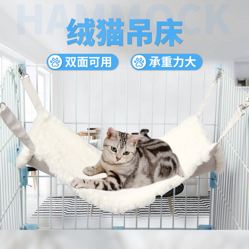 Tempat tidur gantung kucing dipertebal, kandang besi bernapas kanvas dua sisi tersedia tempat tidur gantung sarang ayunan berlapis bulu perlengkapan hewan peliharaan kucing gemuk Musim Dingin