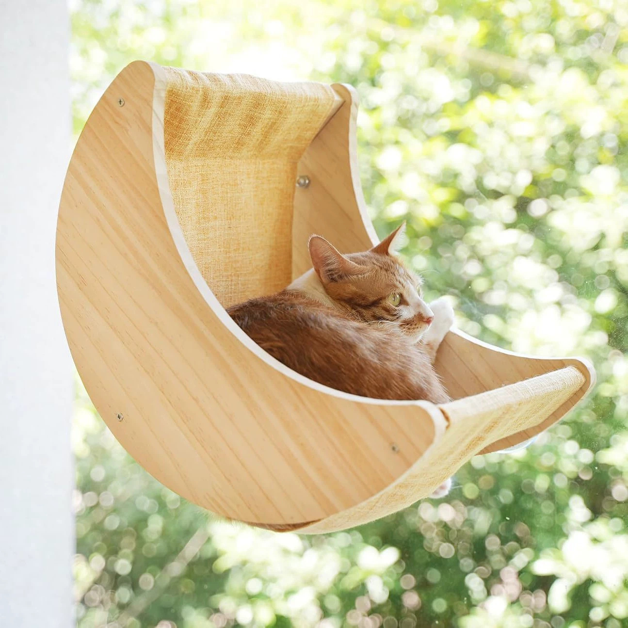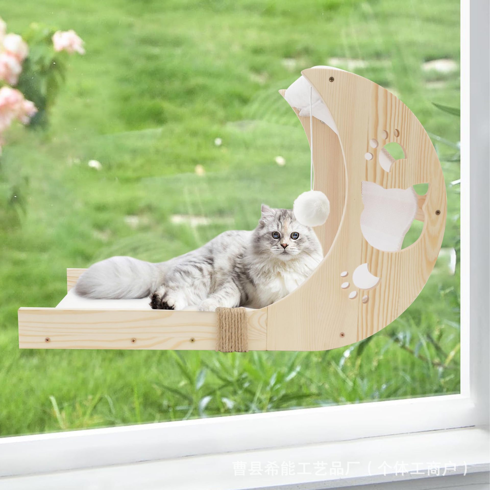 Tempat Tidur Gantung Kucing Kayu Tempat Tidur Bulan Sabit Hewan Peliharaan dengan Pengisap Kucing Tempat Tidur Gantung Dalam Ruangan dengan Jendela