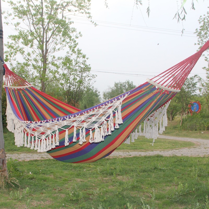 Kanvas Tebal Lebar Dua Orang Model Baru Tongkat Kayu Rumbai Tempat Tidur Gantung Rumbai Luar Ruangan Temu Lintas Batas