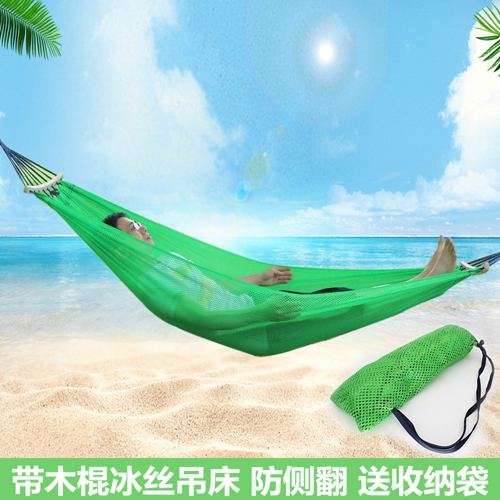Tempat tidur gantung santai dengan tongkat kayu, kursi gantung es sutra anak-anak dewasa, tempat tidur gantung keren luar ruangan