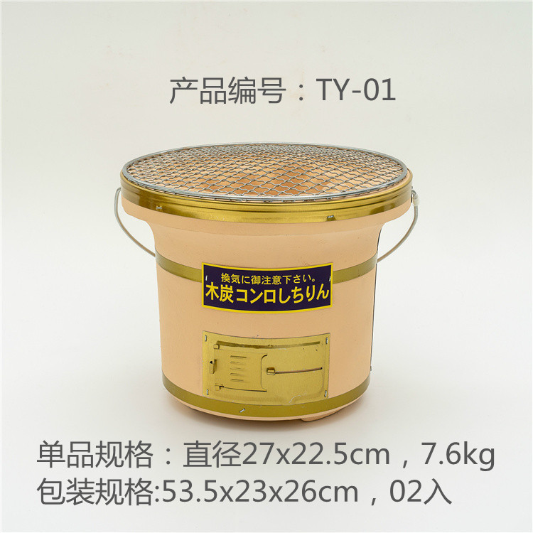 TY-01 oven arang portabel oven dalam ruangan Jepang, panggangan BBQ luar ruangan tepi besi hitam emas
