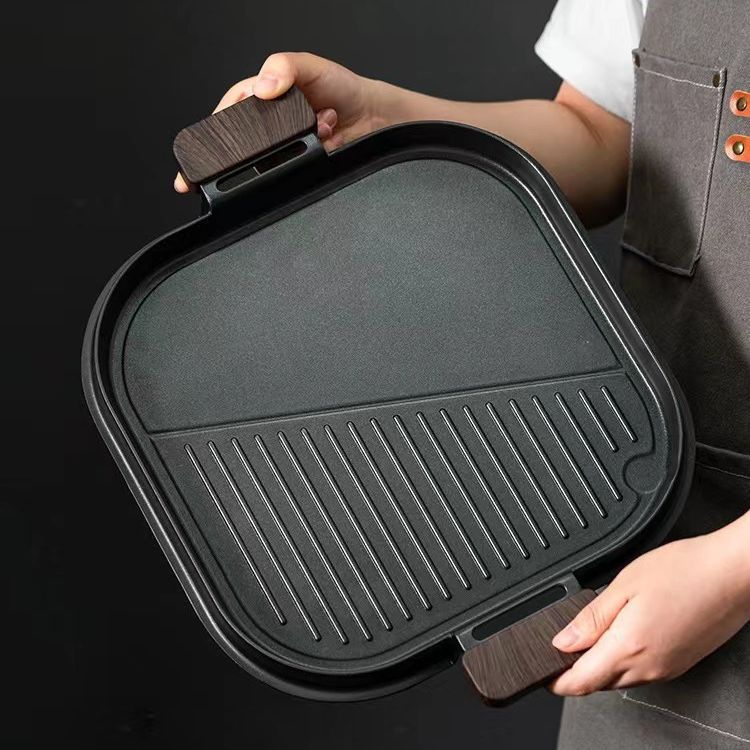 Piring Barbekyu Berkemah Luar Ruangan Piring Besi Cor Piring Panggang Bisa Dilepas Piring Panggang Besar Sol Datar Besi Cor