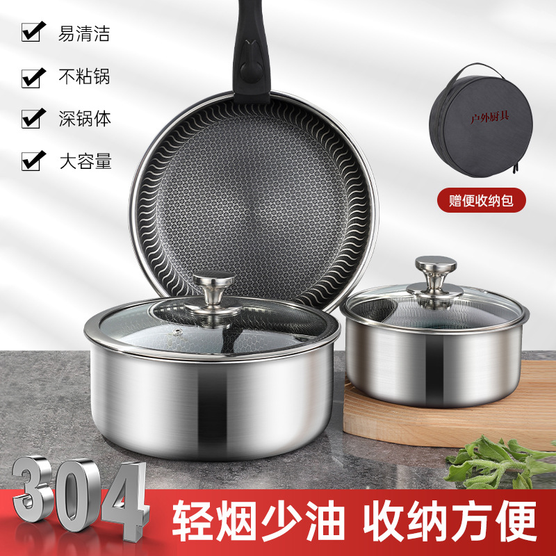 Set Peralatan Berkemah Berkemah Set 316 Stainless Steel Portabel Satu Pot Masak Luar Ruangan Peralatan Panci Goreng Multifungsi