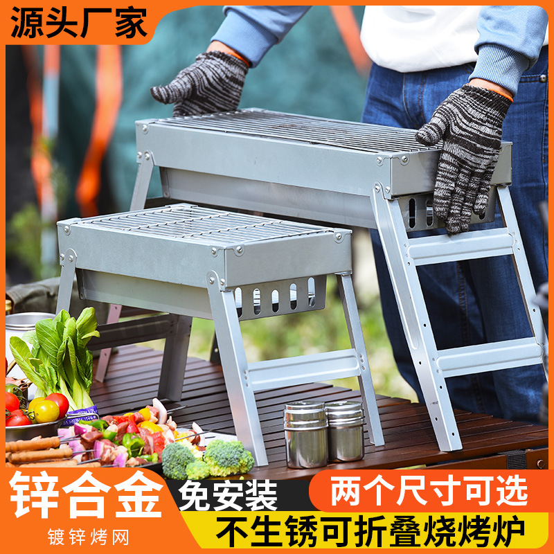 Shanglin Fang ZQ pemanggang barbekyu, grosir outdoor portabel lipat panggangan barbekyu pull-out tidak karat kompor arang barbekyu rumah tangga