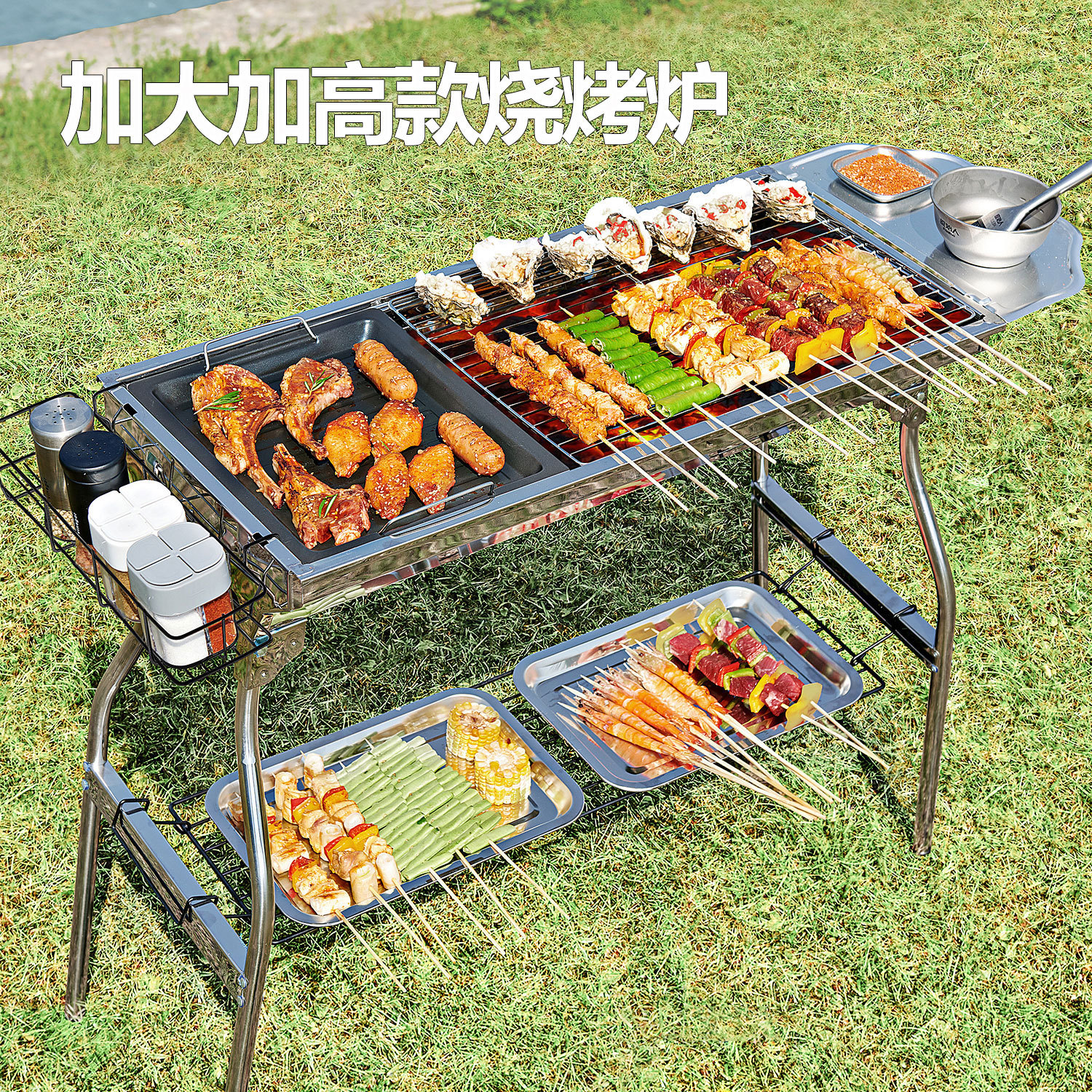 Diskon besar Amazon pemanggang barbekyu lipat baja tahan karat kompor barbekyu portabel Kemah luar ruangan pemanggang arang rumah tangga
