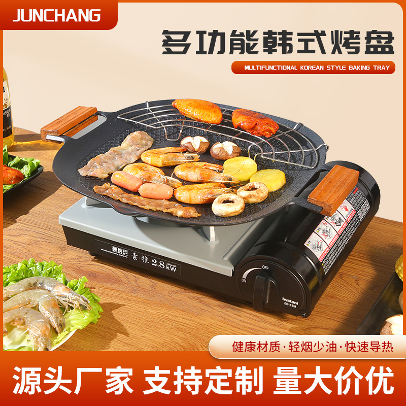 Loyang barbeku memasak luar ruangan, kompor kartu, kompor induksi rumah tangga, panci anti lengket, piring amatir goreng Korea