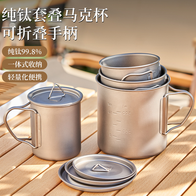 Gelas Air Titanium Murni Gelas Teh Lapis Tunggal Berkemah Luar Ruangan Portabel Gelas Titanium Lipat Gelas Kopi Ringan