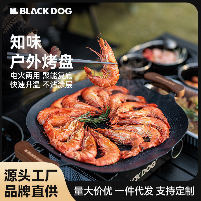 Blackdog panci pemanggang rasa anjing hitam, panci penggorengan anti lengket Korea kompor induksi berkemah luar ruangan barbekyu rumah tangga