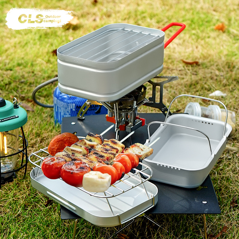 CLS Berkemah Kotak Makan Siang Aluminium Multifungsi Kotak Makan Siang Luar Ruangan Kotak Makan Siang Masak Sayuran Kompor Portabel untuk Mendaki Gunung dan Memancing