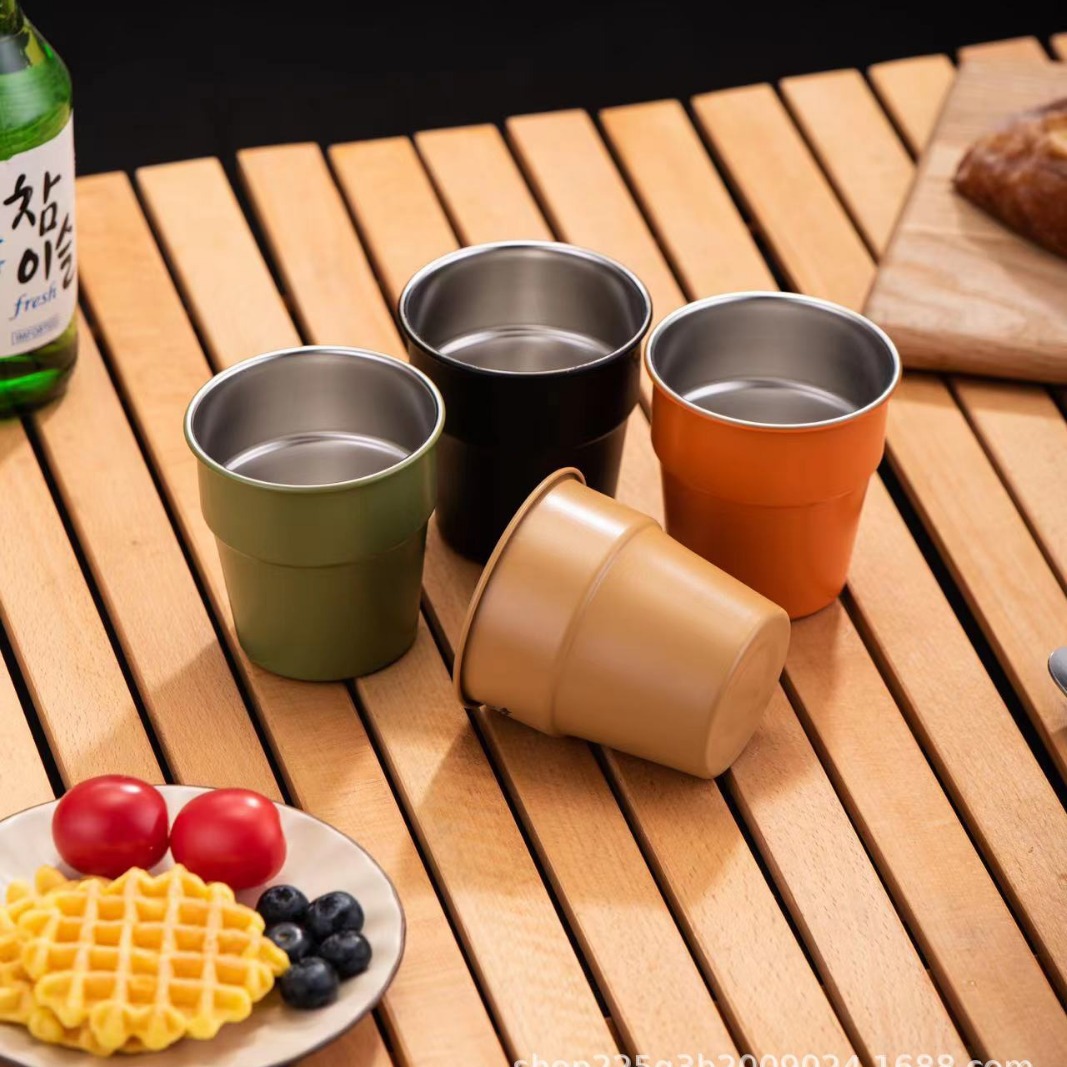 出厂直销304单层啤酒杯彩色不锈钢咖啡台阶杯户外烧烤冷饮露营杯