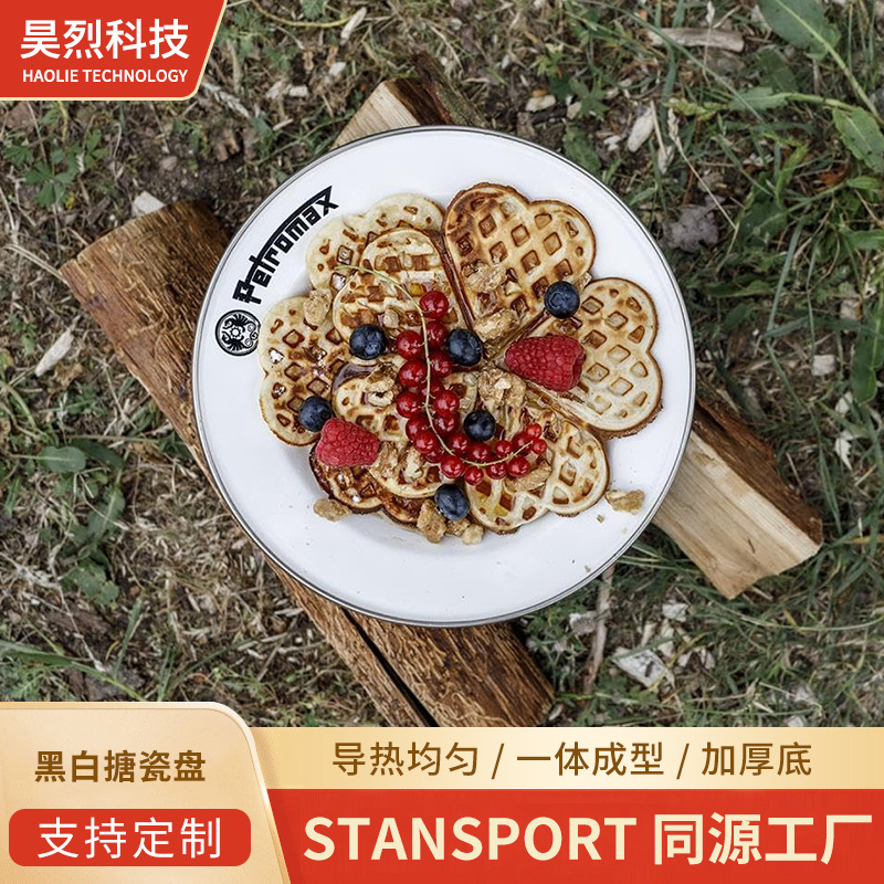 Cross-border piring makan malam gaya sederhana berkemah luar ruangan piring enamel penghangat piring enamel peralatan makan berkemah piring makan malam