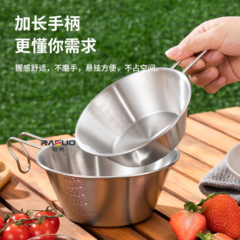 Mangkuk lipat baja tahan karat 304 luar ruangan, peralatan makan berkemah besar mangkuk salad baja tahan karat portabel cangkir mendaki gunung