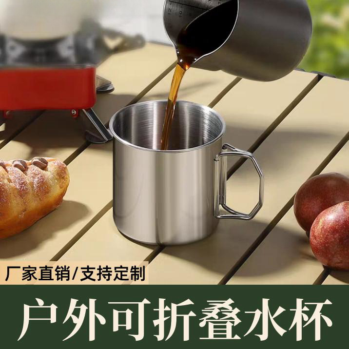 Cangkir air berkemah luar ruangan, cangkir kopi rumah tangga stainless steel dapat dilipat luar ruangan portabel 304
